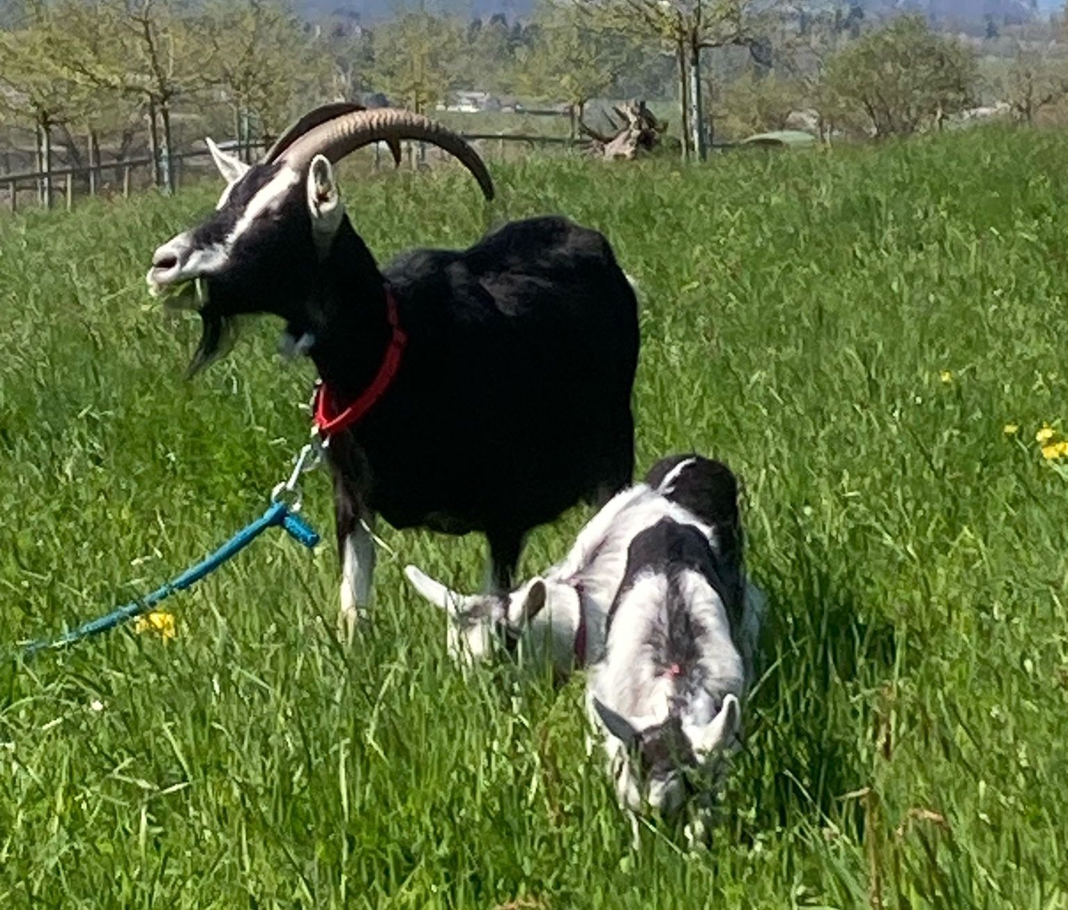 Wir machen eine Wanderung mit unseren zutraulichen Geissen.